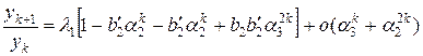При практическом выполнении итераций следует вычислять отношения yk+1/yk для нескольких компонент. Хорошее совпадение этих отношений yk+1/yk будет показывать, что в выражении (5.6) различие значений коэффициентов b2´,b1´ уже перестало играть заметную роль.