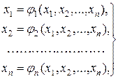 где f(x) —вектор-функция, определенная и непрерывная в окрестности ω изолированного вектор-корня х*. Например, перепишем эту систему в следующем виде: