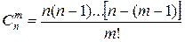 - число сочетаний из n элементов по m.