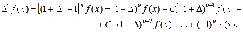 Формула (11.6) дает выражение конечной разности n -го порядка функции f(х) через последовательные значения этой функции.