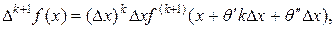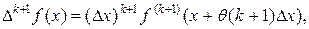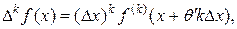 Применяя теорему Лагранжа к получившемуся приращению производной f(k) (х), будем иметь: