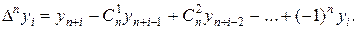 называется первой конечной разностью функции у. Аналогично определяются конечные разности высших порядков