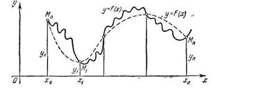 Геометрически это обозначает, что нужно найти кривую у=F(х) некоторого определенного типа, проходящую через заданную систему точек Mi(xi уi.) (i=0, 1, 2,...) (рис 8).