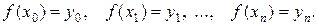 называются узлами интерполяции, и значения некоторой функции f(х) в этих точках