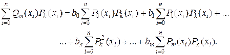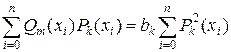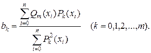 Можно дать явные формулы для коэффициентов bо, b1,..., bт. Умножим тождество (14.8) на полином Pk(x) (k≤m) и просуммируем полученное равенство по системе точек х0, х1,...,хп. Тогда