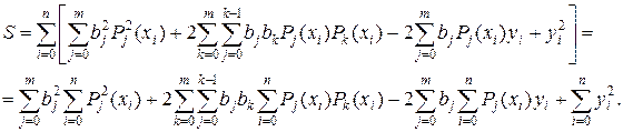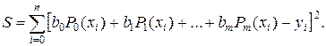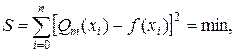 причем квадратичное отклонение S этого полинома от данной функции y=f(x) на множестве точек