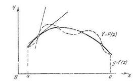 на отрезке [а, b] еще не гарантирует близости на этом отрезке их производных f'(x) и Р' (х), т. е. малого расхождения угловых коэффициентов касательных к рассматриваемым кривым при одинаковых значениях аргумента (рис. 11).