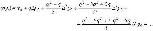 Пусть имеем функцию y(x), заданную в равноотстоящих точках xi, (i=0,1,2,…,n) отрезка [а, b] с помощью значений