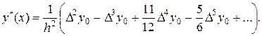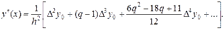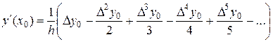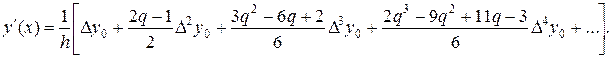 Иногда требуется находить производные функции у в основных табличных точках хi. В этом случае формулы численного дифференцирования упрощаются. Так как каждое табличное значение можно считать за начальное, то положим х = x0, q = 0; тогда будем иметь: