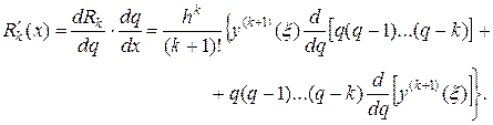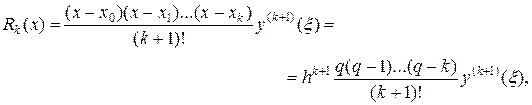 где ξ – некоторое промежуточное число между значениями x0, x1,…,xk, x.