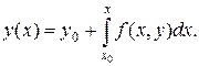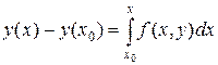 Так как искомая функция у=у(х) находятся под знаком интеграла, то уравнение (18.3) является интегральным. Очевидно, решение интегрального уравнения (18.3) удовлетворяет дифференциальному уравнению (18.1) и начальному условию (18.2).