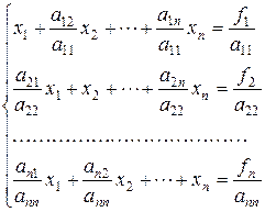 Разделим каждое уравнение системы (1.1) на диагональный элемент. Получим систему