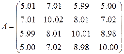, а затем определитель полученной матрицы сравнивают с единицей. Малость указанного определителя по сравнению с единицей является признаком плохой обусловленности системы.