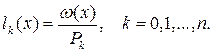 k=0,1,...n, в формуле Лагранжа (3.2), так называемых лагранжевых коэффициентов