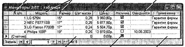 Поле счетчика Текстовые поля Поле денежного Поле даты