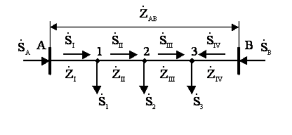 Для расчета сети возьмем схему, приведенную на рисунке 4.5. Здесь мощности
