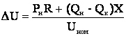 Потеря напряжения в линии при установке БК определяется