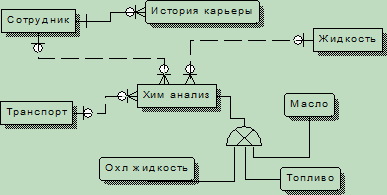 Фрагменты схем базы данных ремонтной службы для АРМ ДИАГНОСТИКА и ХИМИЧЕСКИЙ АНАЛИЗ приведены на рис. 13.1 и 13.2, соответственно. Подробное описание атрибутов, выделенных в этих фрагментах приводится ниже.