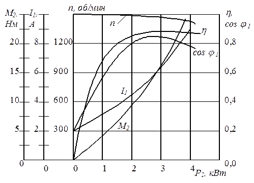 Примерный вид рабочих характеристик асинхронного двигателя