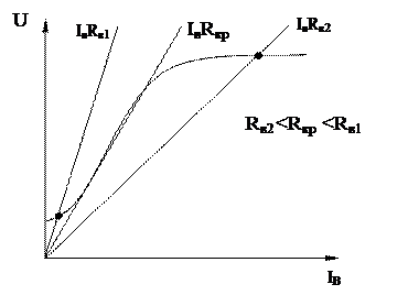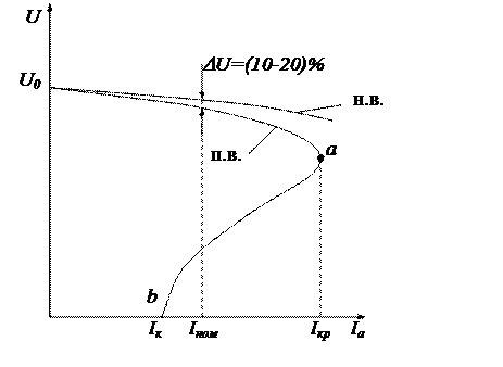 Генератор может быть нагружен до некоторого максимального тока Iкр. При дальнейшем снижении сопротивления нагрузки генератор переходит в точку b, т.е. в режим короткого замыкания.