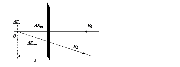Итак, мы бомбардируем поверхность образца ионами с энергией Е0 . Потери энергии при рассеянии будут включать потерю энергии на пути к точке рассеяния