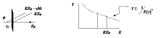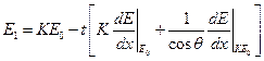 , К – кинематический фактор, а именно отношение энергий иона до и после рассеяния, которое зависит только от массы взаимодействующих частиц и от угла рассеяния. Величины кинематического фактора табулированы и являются индивидуальной характеристикой химического элемента. Вторая составляющая (энергия налетающего иона на глубине t) находится следующим образом