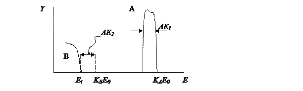 Элемент А проявится в виде интенсивного пика (зарядовое число выше, чем для В). Положение края этого спектра соответствует