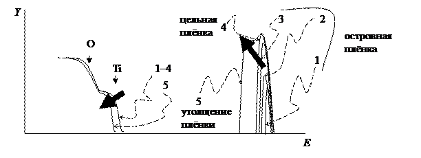 Пример. Ограничимся высокоэнергетической частью спектра оксида висмута на висмуте, не рассматривая вклад кислорода. Было установлено, что пленка оксида висмута может восстанавливаться при приложении соответствующего потенциала. Можно предположить три механизма восстановления. На практике реализуется механизм 3.
