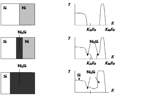 Пример. Исследование многослойных систем. На подложку из кремния напыляют никель, затем нагревают и на гетерогранице происходит образование силицида никеля.