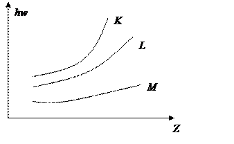 Важно, что энергия рентгеновского перехода является характеристической и меняется по закону, близкому к параболическому, по мере изменения зарядового числа. Соответственно, если мы определяем экспериментальное значение энергии из спектра, то опираясь на таблицы рентгеновских \спектров, можем установить, какой элемент генерирует рентгеновское излучение.