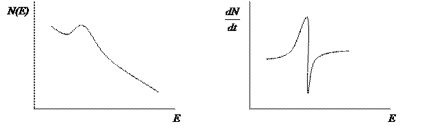 Именно такой вид и имеют экспериментальные спектры Оже-переходов. Из них легко определить энергию Оже-перехода, а амплитуда этих спектров пропорциональна интенсивности Оже-электронного сигнала.