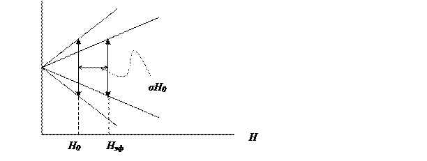 , если против поля. В итоге, энергетический уровень расщепляется на два, причем при данной напряженности магнитного поля величина расщепления составляет