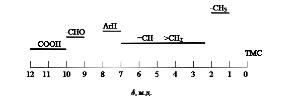 ), альдегидные протоны (9 – 10), протоны ароматических систем (7 – 8).