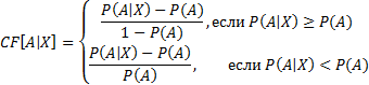 Если CFn>0, то заключению А правила присваивается коэффициент уверенности CF[A| · ] по формуле: CF[A| · ] = CFp · CFn, т.е. вывод достоверен с коэффициентом CF[A| · ].