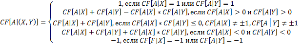 4. Связь КОМБ. Отдельно определяются CF[A| X] и CF[A| Y] (как для связей И/ИЛИ), и для определения коэффициента уверенности связи КОМБ действует комбинированная функция: