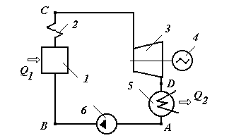 Рис. 4.2. Схема тепловой установки, в которой осуществляется цикл
