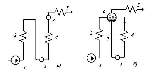 a) – прямоточная схема, б) – схема с естественной циркуляцией,