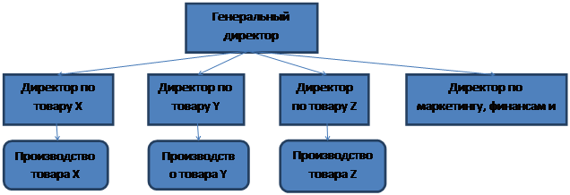 Разделение организации по функциям не является эффективным, поскольку зачастую возникают нестыковки. По мнению этой школы руководители, поскольку они универсальны, должны замыкать на себя все функции. Была предложена продуктовая схема организации (иногда называемые дивизиональными), когда происходит своеобразная «децентрализация по видам выпускаемой продукции).