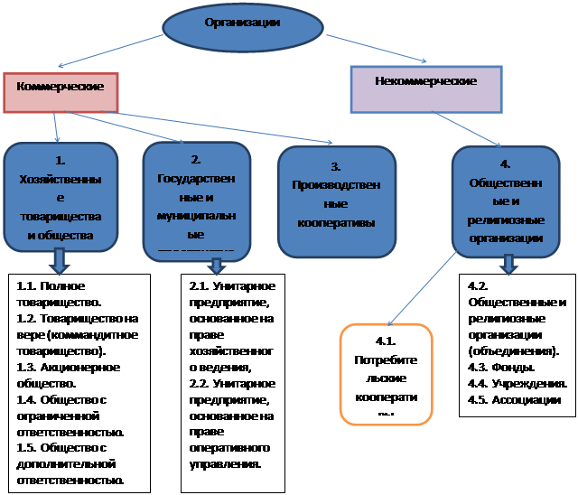 Сегодня в России многообразие таких форм закреплено законом - Гражданским кодексом РФ. В соответствии с логикой этого кодекса по отношению к целям работы организации выделяют: