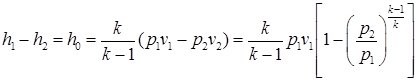 При адиабатном истечении первый закон термодинамики будет иметь вид: