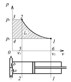 При обратном движении поршня клапан а закрывается и газ сжимается до давления р 2 по линии 1 – 2. Техническая работа сжатия газа в цилиндре: