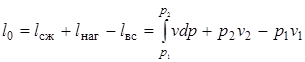 По своей сути работы сжатия и нагнетания являются отрицательными, а работа всасывания положительной. Поэтому, абсолютное значение работы затраченной на сжатие 1 кг газа в компрессоре будет определено:
