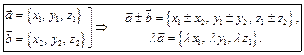Линейные операции над в-рами сводятся к таким же операциям над их одноименными координатами: