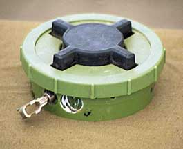 ТМ-62М мина противотанковая противогусеничная нажимного действия. Взрыв происходит при наезжании гусеницей танка или колесом автомобиля на верхнюю крышку мины.