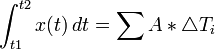 где x (t) - желаемый входной сигнал в пределе от t1 до t2, а ∆ Ti - продолжительность i -го ШИМ импульса, каждого с амплитудой A. ∆ Ti подбирается таким образом, что суммарные площади (энергии) обеих величин приблизительно равны за достаточно продолжительный промежуток времени, равны также и средние значения величин за период: