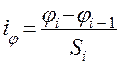Степень изменение кривизны скважины характеризуется интенсивностью искривления i, которая представляет собой приращение величины зенитного ∆ α, или азимутального ∆ φ углов на единицу длины определенного интервала S ствола скважины: