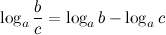Логарифм частного (дроби) равен разности логарифмов сомножителей.