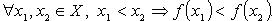 Функция f строго возрастает (возрастает) на множестве Х: