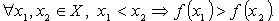 Функция f строго убывает (убывает) на множестве Х: