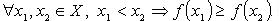 Функция f убывает (не возрастает) на множестве Х: